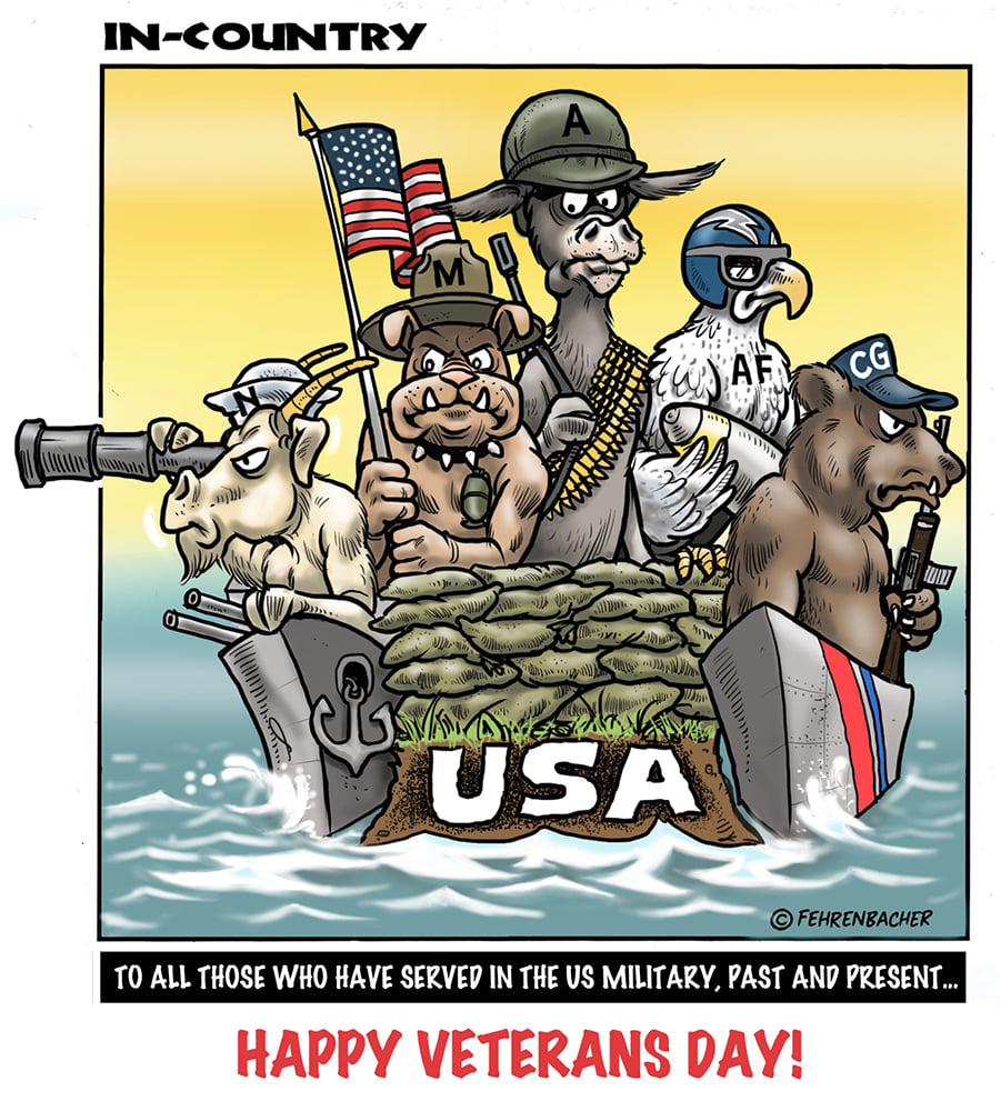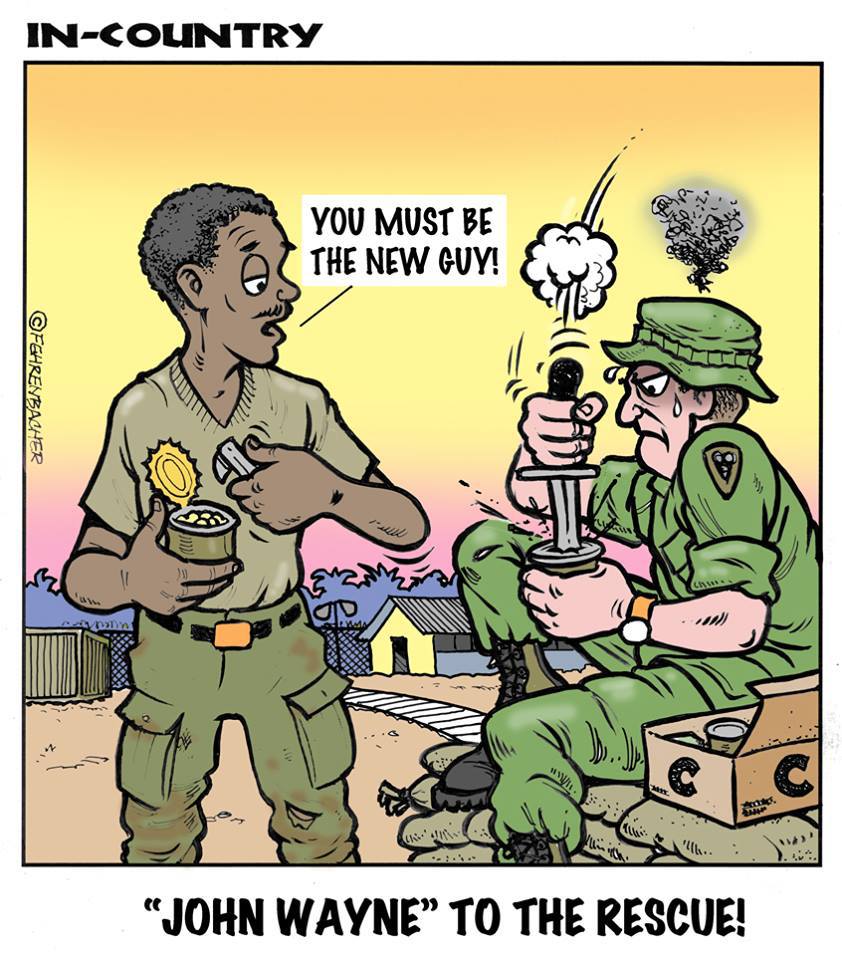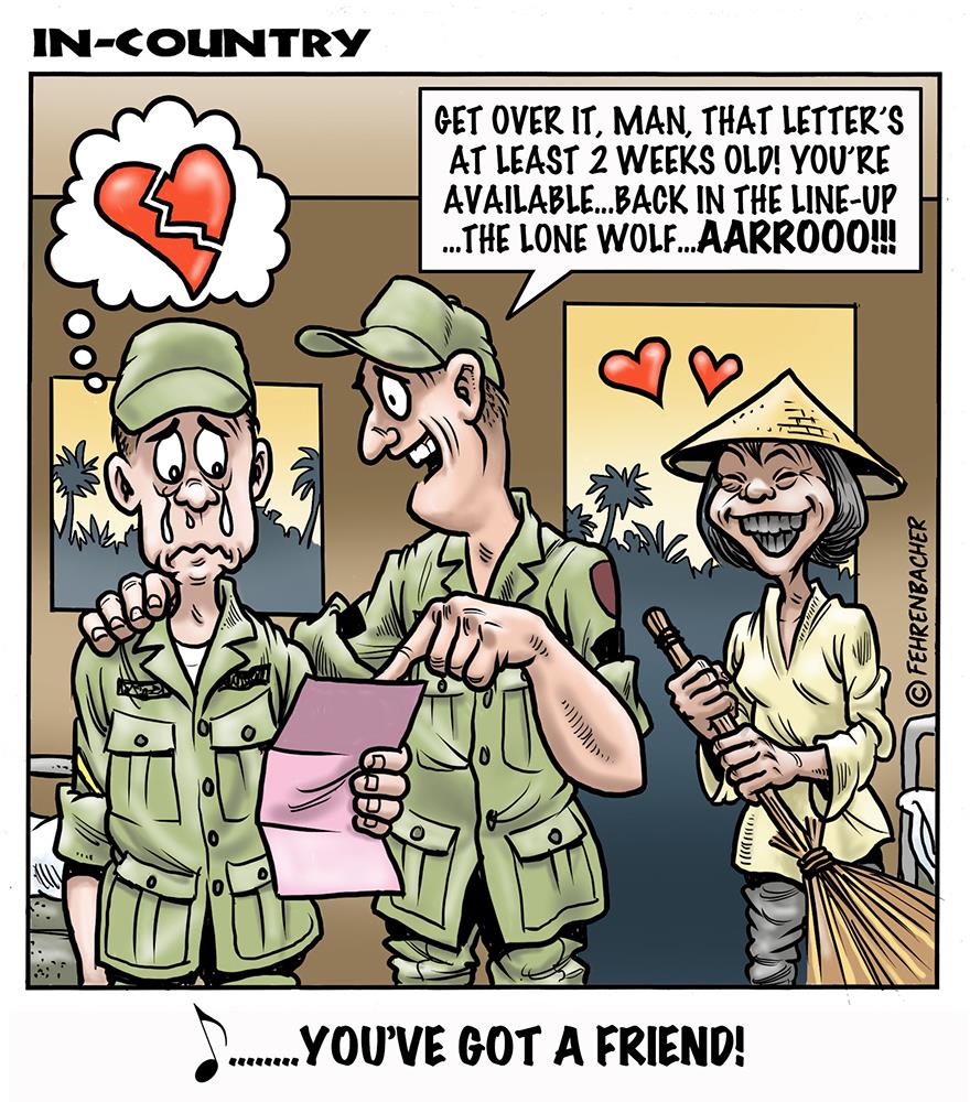 Phil enlisted in the Army in 1965 where he served for years in Vietnam. He became a graphic designer and has worked for the state of Oregon for 26 years. He retired in 2003 and started the Cartoon "In-Country". The cartoons reflect his experiences during his tour of duty in South Vietnam.