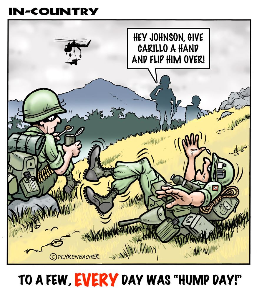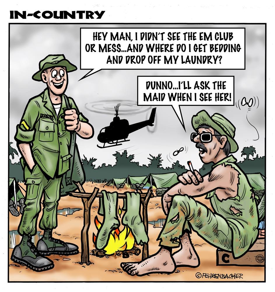 Phil enlisted in the Army in 1965 where he served for years in Vietnam. He became a graphic designer and has worked for the state of Oregon for 26 years. He retired in 2003 and started the Cartoon "In-Country". The cartoons reflect his experiences during his tour of duty in South Vietnam.